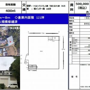 所在地 千葉県柏市 高柳字高野台824番1  柏市高柳貸倉庫