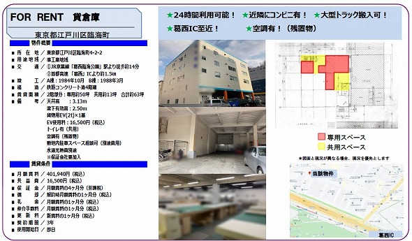 東京都江戸川区西葛西8丁目 34.5坪 貸倉庫・貸工場|L-Net(エルネット)