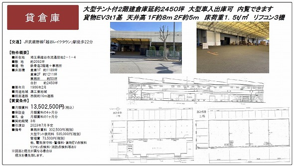 越谷、八潮、三郷、吉川エリアの貸倉庫・貸工場特集の貸倉庫・貸工場