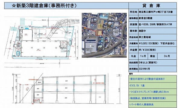 埼玉県三郷市戸ケ崎3丁目706 639.4坪 貸倉庫・貸工場|L-Net(エルネット)