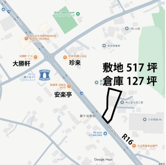 | 所在地 | 千葉県柏市藤ケ谷新田62-7 藤ヶ谷新田 16号倉庫 | ||