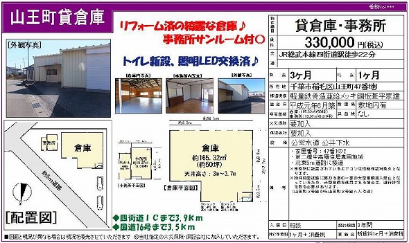 | 物件種別 | 貸倉庫・貸工場 | 建物構造 | |