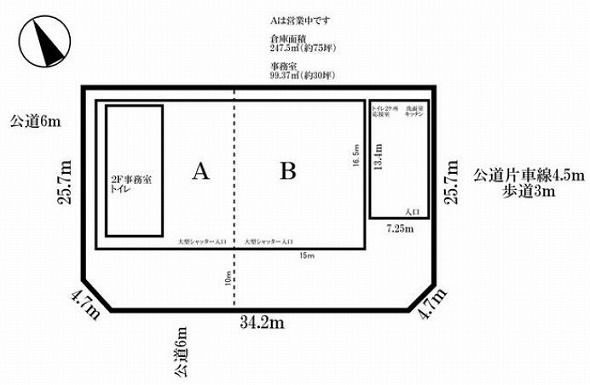 保証金 建物面積 247.5m² / 74.87坪