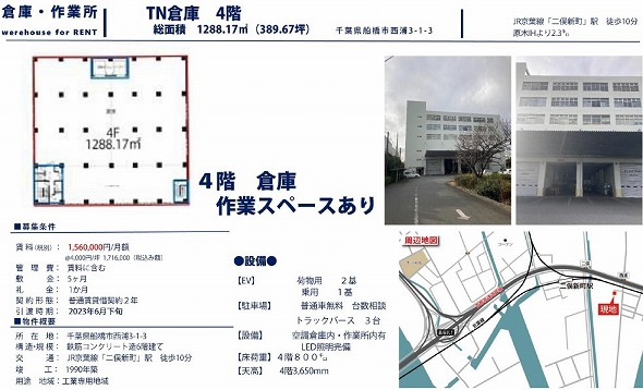 所在地 千葉県船橋市西浦3丁目1 TN倉庫