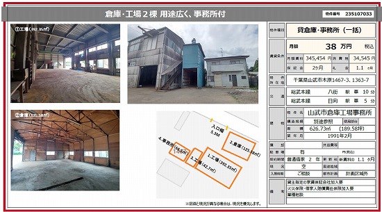 千葉県山武市木原1476-3 189.6坪 貸倉庫・貸工場|L-Net(エルネット) 画像1 千葉県山武市木原1476-3 189.6坪 貸倉庫・貸工場|L-Net(エルネット) 画像2 千葉県山武市木原1476-3 189.6坪 貸倉庫・貸工場|L-Net(エルネット) 画像3 千葉県山武市木原1476-3 189.6坪 貸倉庫・貸工場|L-Net(エルネット) 画像4