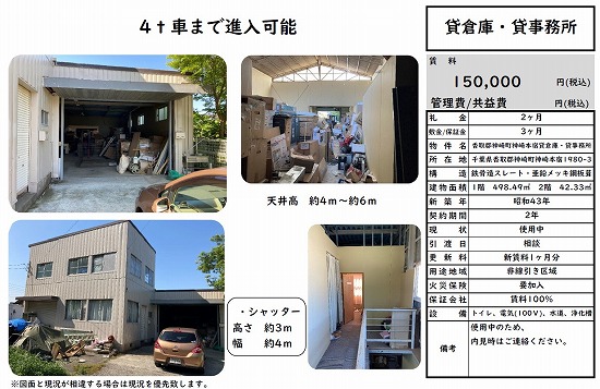 | 物件種別 | 貸倉庫・貸工場 | 建物構造 | |