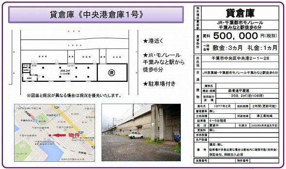 所在地 千葉県千葉市中央区 中央港2丁目1-28  中央港倉庫1号