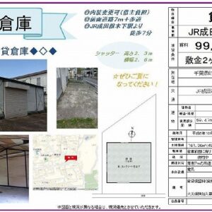 ・貸倉庫/部分貸し ・成田空港へのアクセス良好 ・40ftコンテナ接車可 ・天井高 5m以上