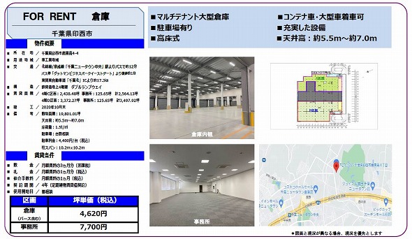 印西市の貸倉庫・貸工場