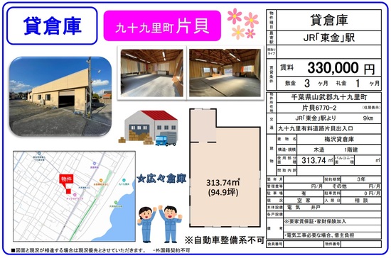千葉県山武郡九十九里町片貝6770-2 94.9坪 貸倉庫・貸工場|L-Net(エルネット)