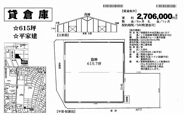 | 物件種別 | 貸倉庫・貸工場 | 建物構造 | |