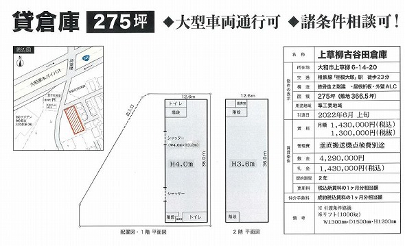 | 物件種別 | 貸倉庫・貸工場 | 建物構造 | |