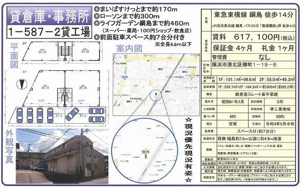 | 所在地 | 神奈川県横浜市港北区樽町1丁目19-6 1-587-2貸工場 | ||