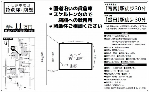 | 交通 | JR東海道本線 鴨宮駅 徒歩30分 小田急小田原線 螢田駅 徒歩30分 |