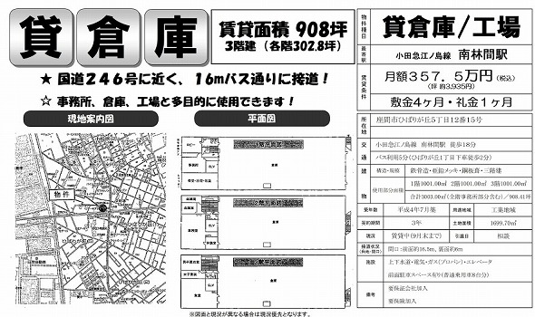 | 保証金 | 建物面積 | 3003m² / 908.41坪 | |
