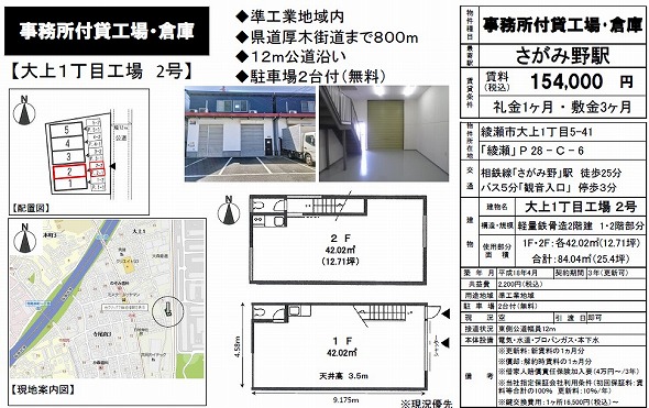 神奈川県綾瀬市大上1丁目5-41 25.4坪 貸倉庫・貸工場|L-Net(エルネット) 画像1 神奈川県綾瀬市大上1丁目5-41 25.4坪 貸倉庫・貸工場|L-Net(エルネット) 画像2 神奈川県綾瀬市大上1丁目5-41 25.4坪 貸倉庫・貸工場|L-Net(エルネット) 画像3 61211-4.jpg