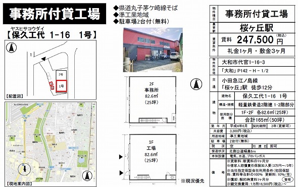 | 所在地 | 神奈川県大和市代官1丁目16-3 保久工代1-16(ヤスヒサコウダイ1・16) 1号 | ||