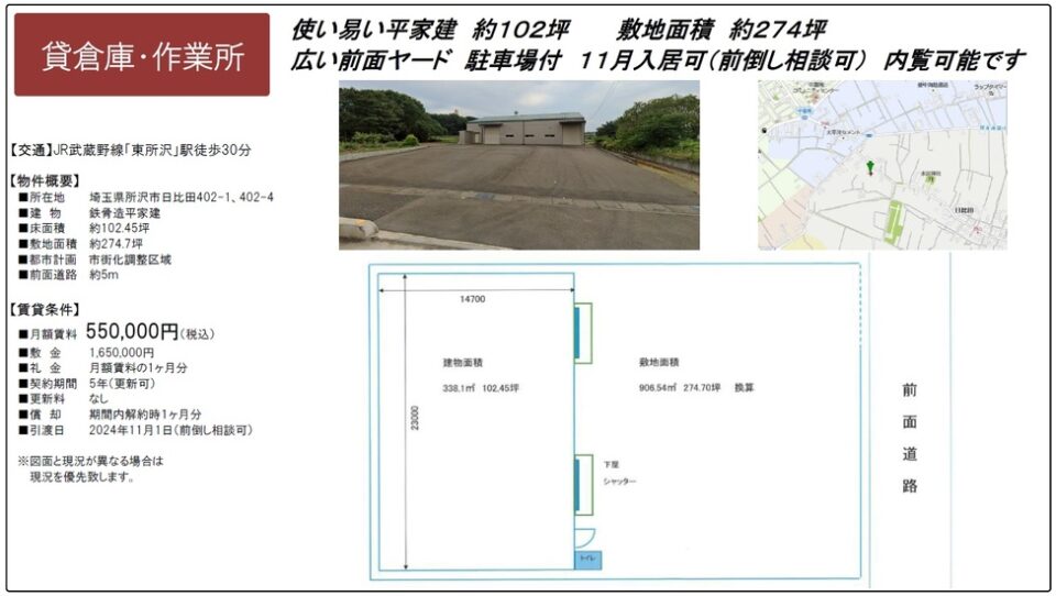 | 交通 | JR武蔵野線 東所沢駅 徒歩30分 | ||