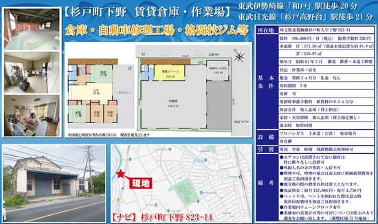 | 物件種別 | 貸倉庫・貸工場 | 建物構造 | |