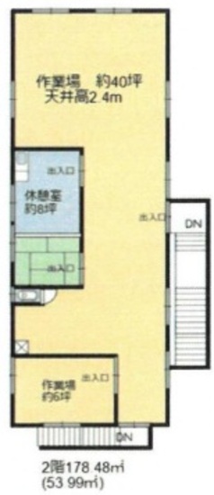 ・1階 倉庫(天井高3~3.9m)、事務所、作業場/2階 軽作業場/休憩室