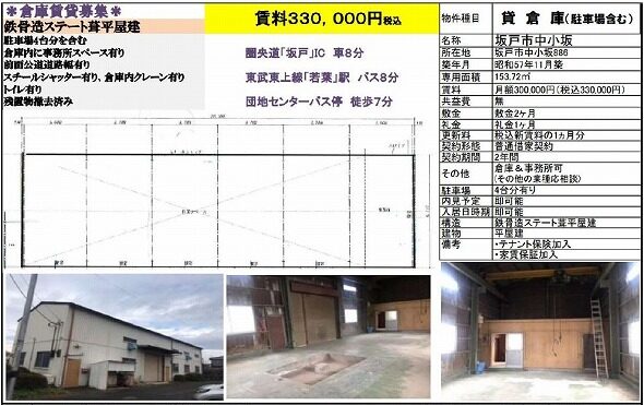 | 保証金 | 建物面積 | 153.72m² / 46.5坪 | |