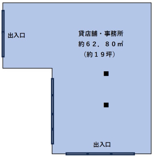 | 保証金 | 建物面積 | 62.8m² / 19坪 | |