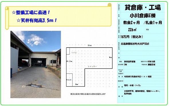| 物件種別 | 貸倉庫・貸工場 | 建物構造 | |