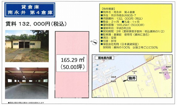 | 所在地 | 埼玉県所沢市大字南永井805-7 南永井 第4倉庫 | ||