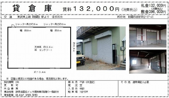 | 保証金 | 建物面積 | 68.64m² / 20.76坪 | |