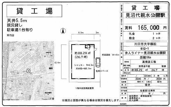 | 保証金 | 建物面積 | 88.29m² / 26.71坪 | |