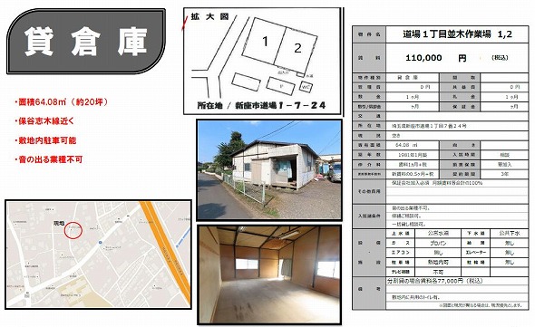 | 所在地 | 埼玉県新座市道場1丁目7-24 道場1丁目並木作業場 | ||