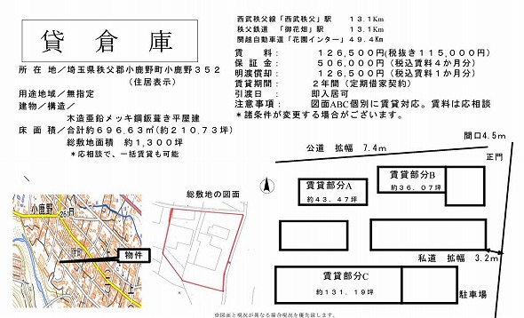 | 物件種別 | 貸倉庫・貸工場 | 建物構造 | |