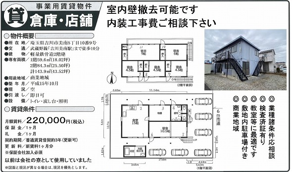 埼玉県吉川市美南5丁目10-9 43.5坪 貸倉庫・貸工場|L-Net(エルネット) 画像1 埼玉県吉川市美南5丁目10-9 43.5坪 貸倉庫・貸工場|L-Net(エルネット) 画像2 埼玉県吉川市美南5丁目10-9 43.5坪 貸倉庫・貸工場|L-Net(エルネット) 画像3 埼玉県吉川市美南5丁目10-9 43.5坪 貸倉庫・貸工場|L-Net(エルネット) 画像4
