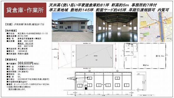 | 物件種別 | 貸倉庫・貸工場 | 建物構造 | |