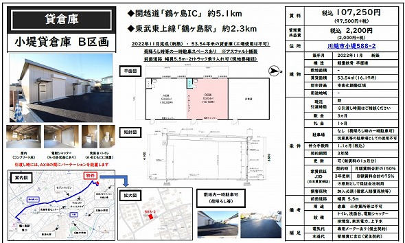所在地 埼玉県川越市 大字小堤588-2  小堤貸倉庫 B区画
