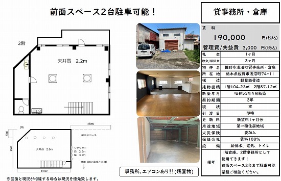 | 物件種別 | 貸倉庫・貸工場 | 建物構造 | |