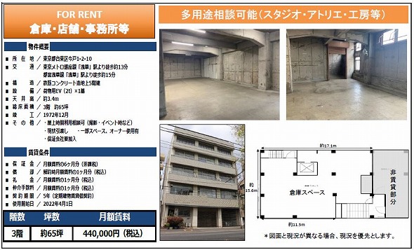 | 物件種別 | 貸倉庫・貸工場 | 建物構造 | |