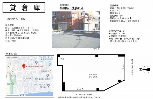 | 交通 | 都営新宿線 菊川駅 徒歩6分 | ||