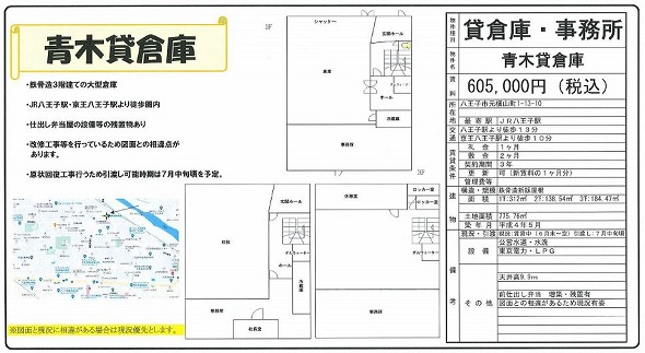 | 所在地 | 東京都八王子市元横山町1丁目13-10 青木貸倉庫 | ||