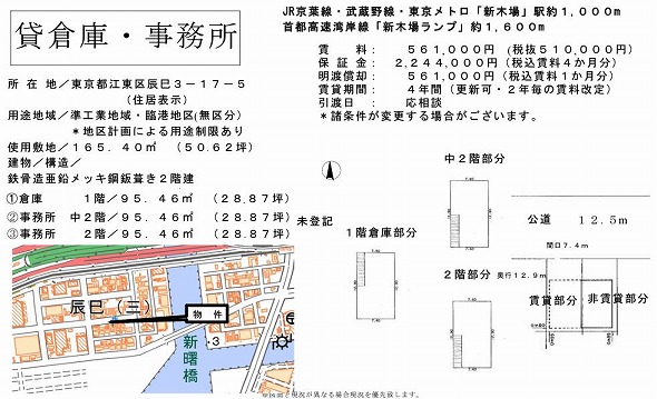 | 物件種別 | 貸倉庫・貸工場 | 建物構造 | |