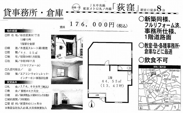 | 保証金 | 建物面積 | 44.55m² / 13.48坪 | |