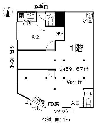 保証金 3ヶ月 建物面積 69.67m² / 21.08坪