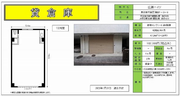 | 物件種別 | 貸倉庫・貸工場 | 建物構造 | |