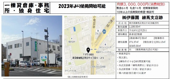 | 所在地 | 東京都練馬区南田中4丁目9-25 (株)伊藤園 練馬支店跡 | ||