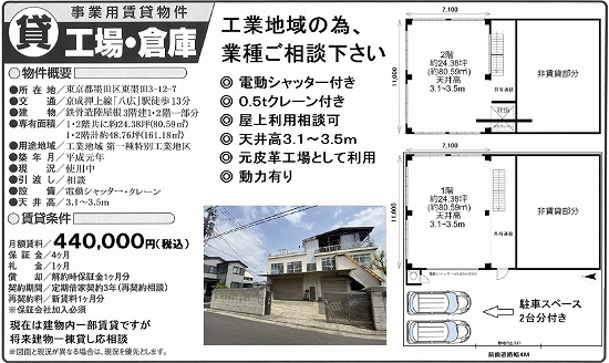 | 物件種別 | 貸倉庫・貸工場 | 建物構造 | |