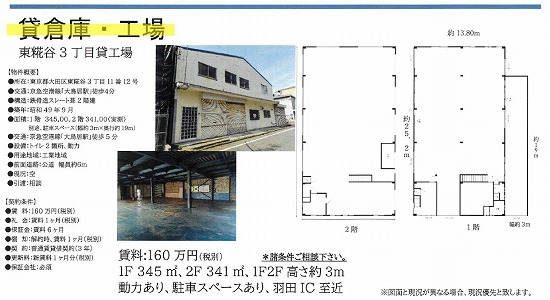 | 物件種別 | 貸倉庫・貸工場 | 建物構造 | |