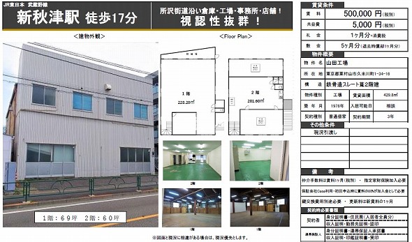 東京都東村山市恩多町5丁目 60坪 貸倉庫・貸工場|L-Net(エルネット)
