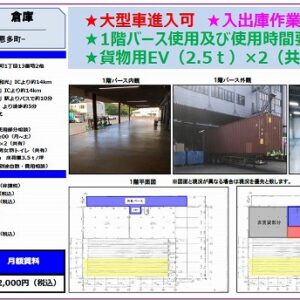・駐車場(無料)あり ・天井高2.5m以上 ・共用トイレあり