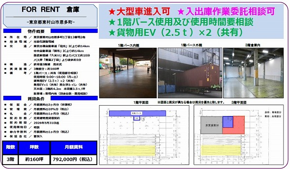 東京都東村山市恩多町5丁目 445.7坪 貸倉庫・貸工場|L-Net(エルネット)
