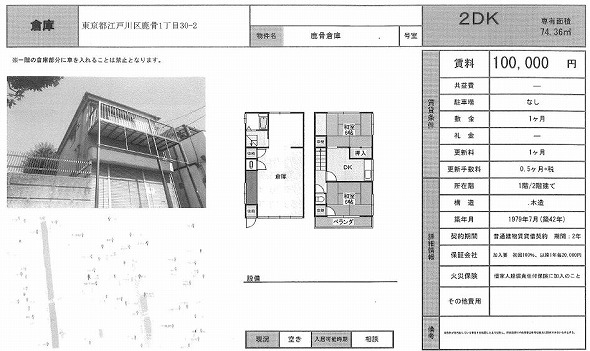 所在地 東京都江戸川区 鹿骨1丁目30-2  鹿骨倉庫